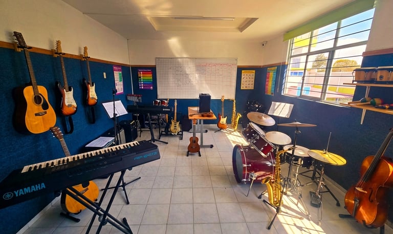Área equipada para el desarrollo de habilidades musicales y expresión artística,.